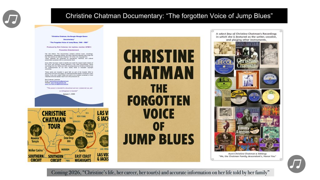 Christine Chatman was a powerhouse pianist, vocalist, arranger, and bandleader whose music electrified the Midwest and the Chitlin’ Circuit during the 1940s and 1950s. She performed for Black servicemen during World War II — including the Tuskegee Airmen — and became a sought-after session musician whose fingerprints appear across the foundations of jump blues and early R&B.